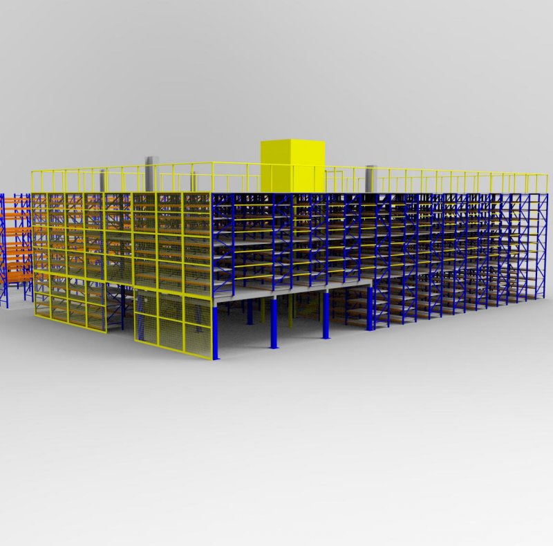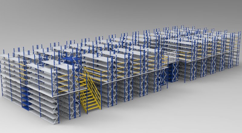 閣樓貨架系統,通常利用中型擱板式貨架或重型擱板式貨架作為主體支撐加上樓面板(根據貨架單元的總負載重量來決定選用何種貨架),樓面板通常選用冷軋型鋼樓板、花紋鋼樓板或鋼格柵樓板。近幾年多使用冷軋型鋼樓板,它具有承載能力強、整體性好、承載均勻性好、精度高、表面平整、易鎖定等優勢.有多種類型可選,并且易匹配照明系統,存取、管理均較為方便。單元貨架每層載重量通常在500kg以內,樓層間距通常為2.2m~2.7m,頂層貨架高度一般為2m左右,充分考慮工作人員操作的便利性。
