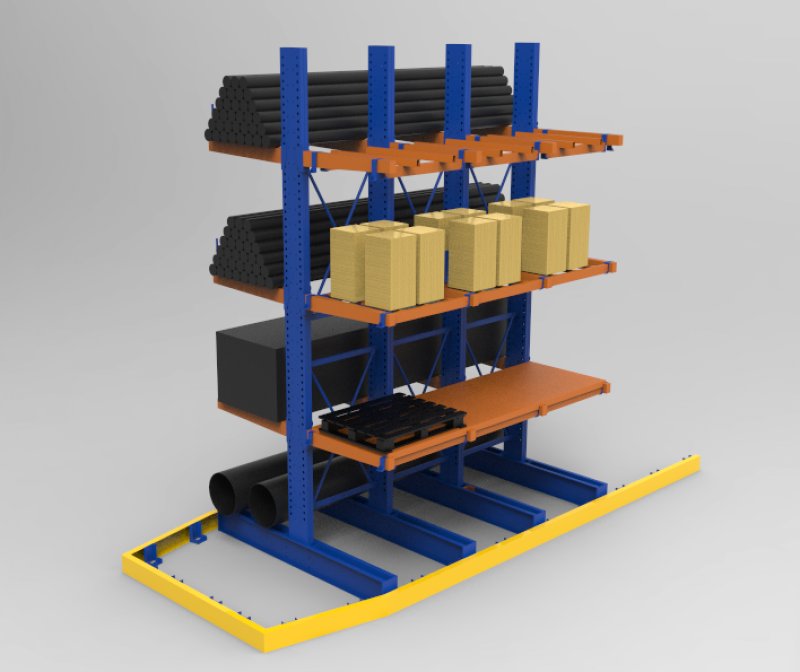 分享我們制作過的案例: 項目一:帶層板放置箱子的懸臂貨架