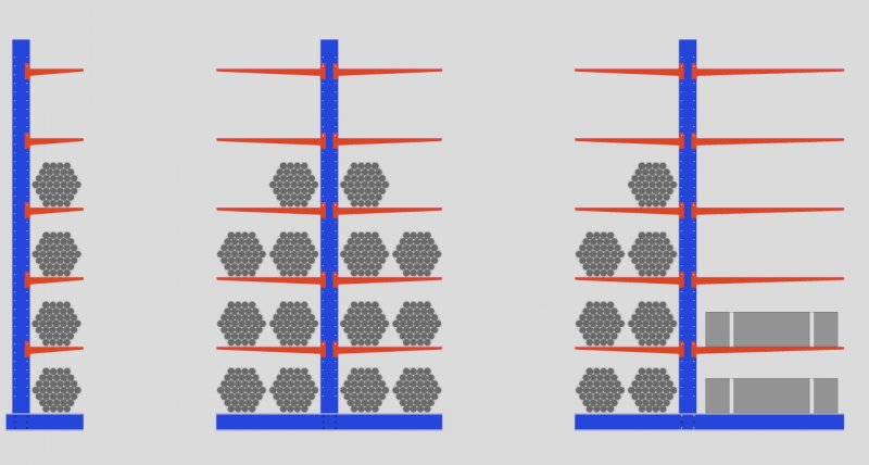 放置木材和建材產品的懸臂貨架。