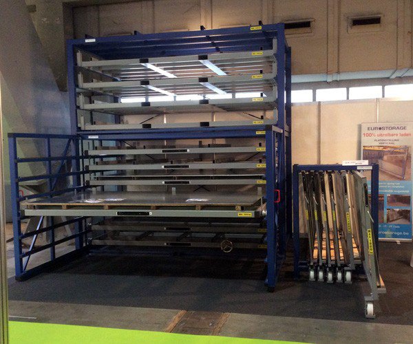 板材存放節(jié)省空間方法 抽屜式板材存放架 板材的種類多,規(guī)格不同,厚度不同,每種規(guī)格都的單獨存放,不然使用不方便,這樣就要占用大量的廠房空間,如何節(jié)省占地空間還使用方便是企業(yè)比較關心想了解的。 板材存放架采用抽屜式結構,一組貨架分為8層,可以存放8種板材,只占用一種板材的存儲空間,提高8倍的存儲量,每層都能單獨伸出使用,使用吊車吊裝板材,保護人員安全不被劃傷,也保護板材卷邊 變形。 一組板材存放架解決了板材在存儲中遇到的各種問題,使用后板材存儲環(huán)境改善了,廠房空間變大了,板材擺放整齊了,節(jié)省了存取時間和人工,提高效率了,還節(jié)省成本投入了。